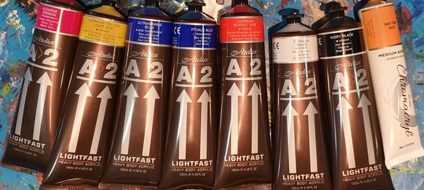 we love the Atelier A2 Acrylic paint range! they are 120mls.