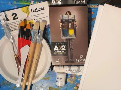 Contains a 12 pack of CHROMA Atelier A2 Heavy Duty Paints Plus chromachryl skin tone base, Also included are brushes and plastic palette knife, along with a 30cm x 40cm canvas and our colour mixing fact sheets. Bundle this with a workshop or Art Class online Video.