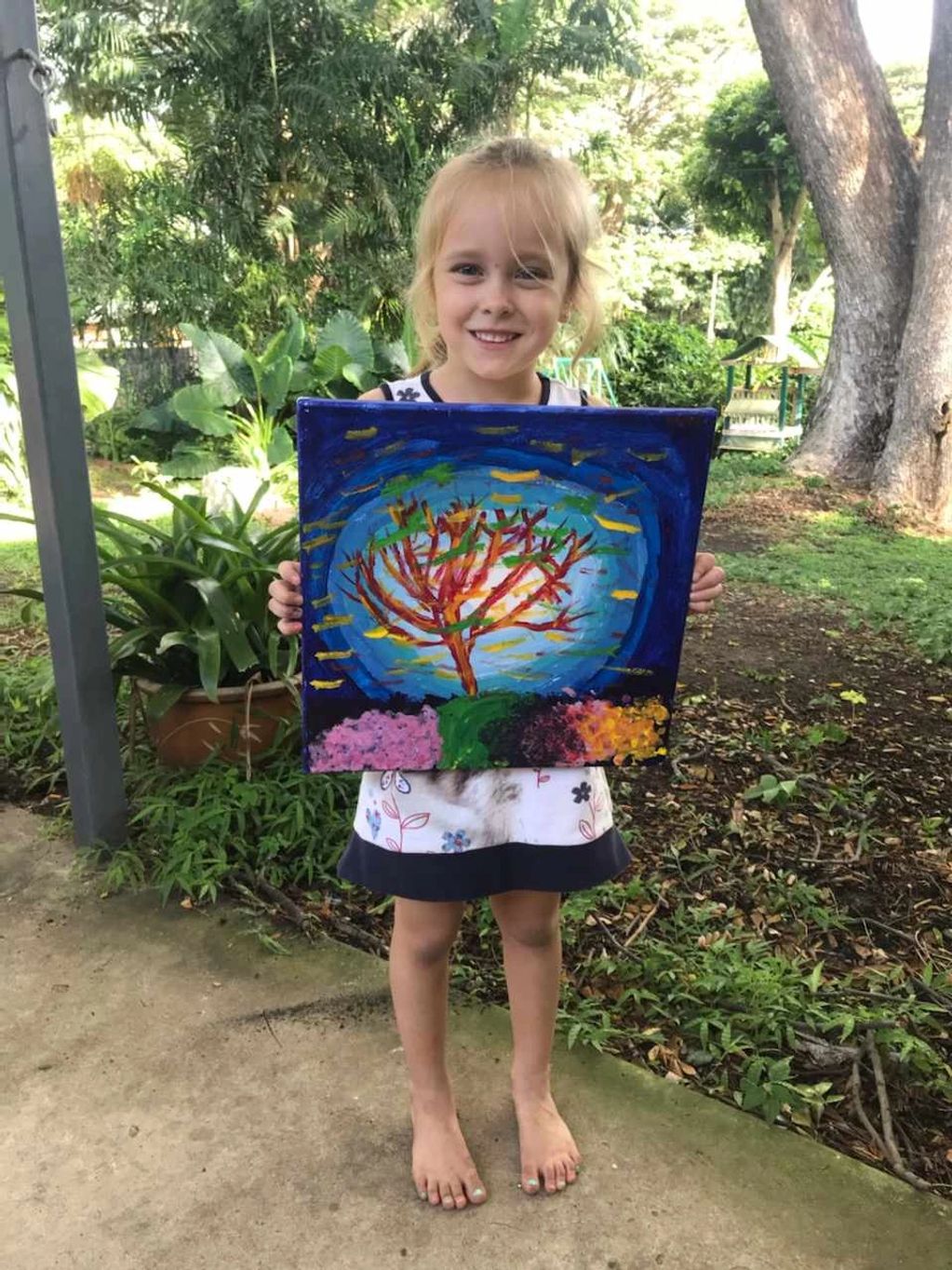 We sent a package of paints and canvases in. Love this Isolation creation. Well done following our art classes online Cadie.